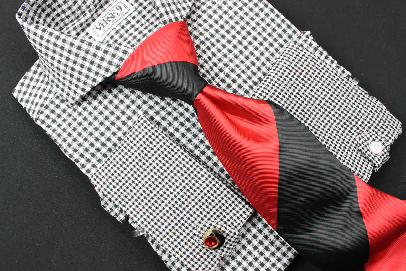 New – Designer Stripe Red/Black Tie