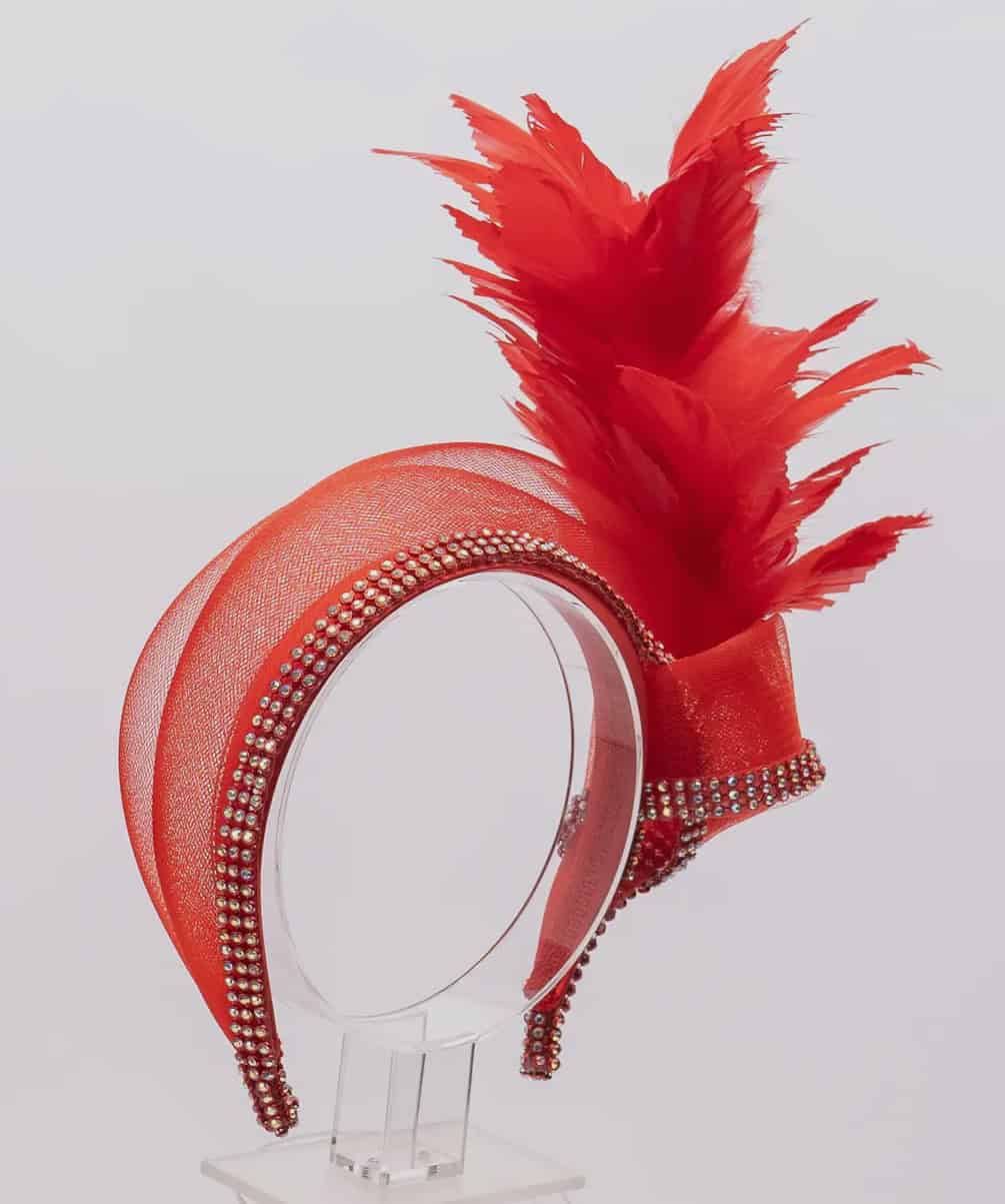 New – Feathered Red Embellished Fascinator (H4)