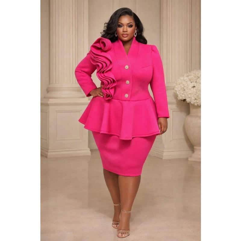 Be the first to review “New – Fuchsia Plus Size Combo Bell Sleeve Midi Dress (1X-3X)”