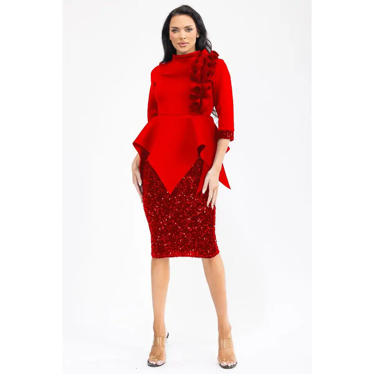 New – Peplum Ruffled Sequin (Red Dress) 4 Size Selections (S-XL) –Holiday Ready!!!